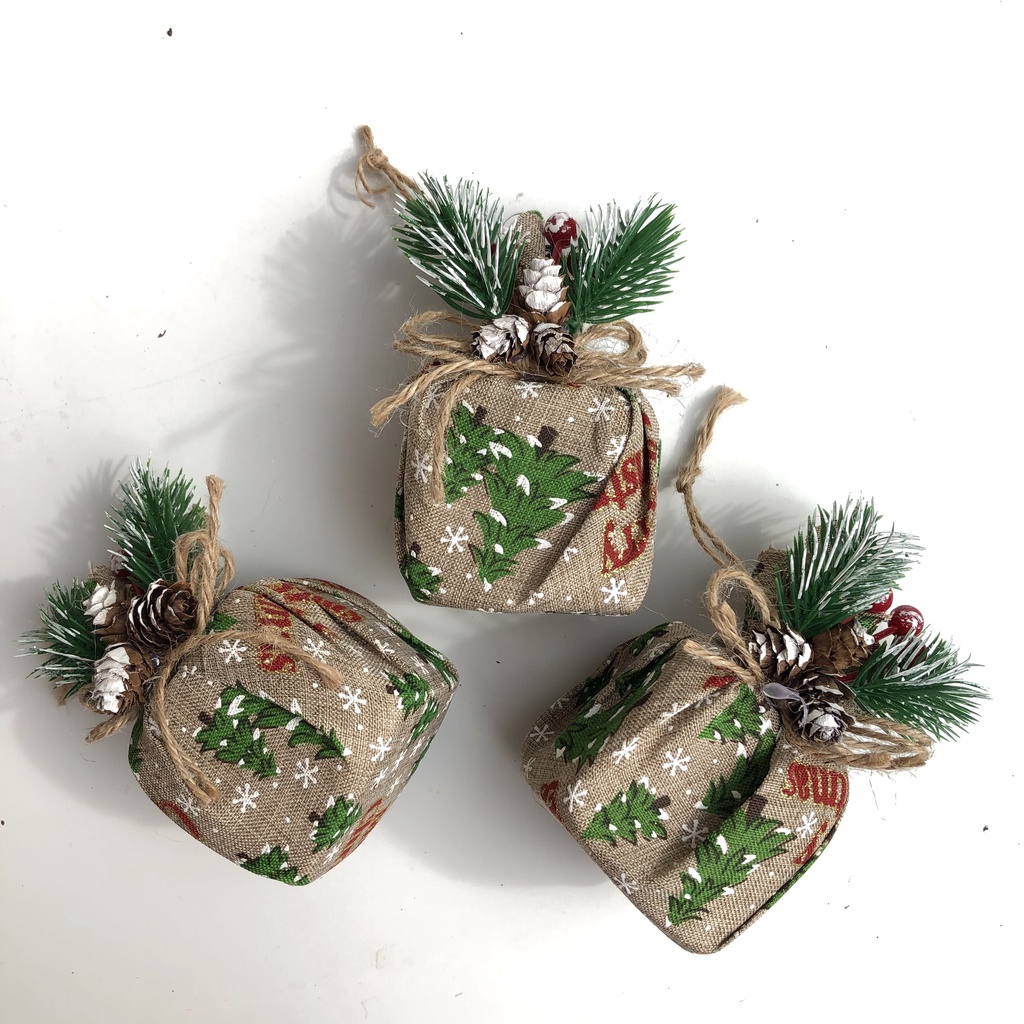 Combo 3 quả châu vải cao cấp dáng vuông trang trí cây thông Giáng sinh Noel Kích thước mỗi quả : Cao 11cm , khối vuông 6cm x 6cm Châu bọc vải kiểu bao bố thô có in họa tiết hình cây thông và chữ Merry Christmas, phía trên có cành thông, quả đỏ và quả thông, có dây treo để có thể trang trí trên cây thông Noel. Dòng châu cao cấp này sẽ khiến cây thông nhà bạn trở trên vô cùng sang trọng , lạ mắt và ấm áp.