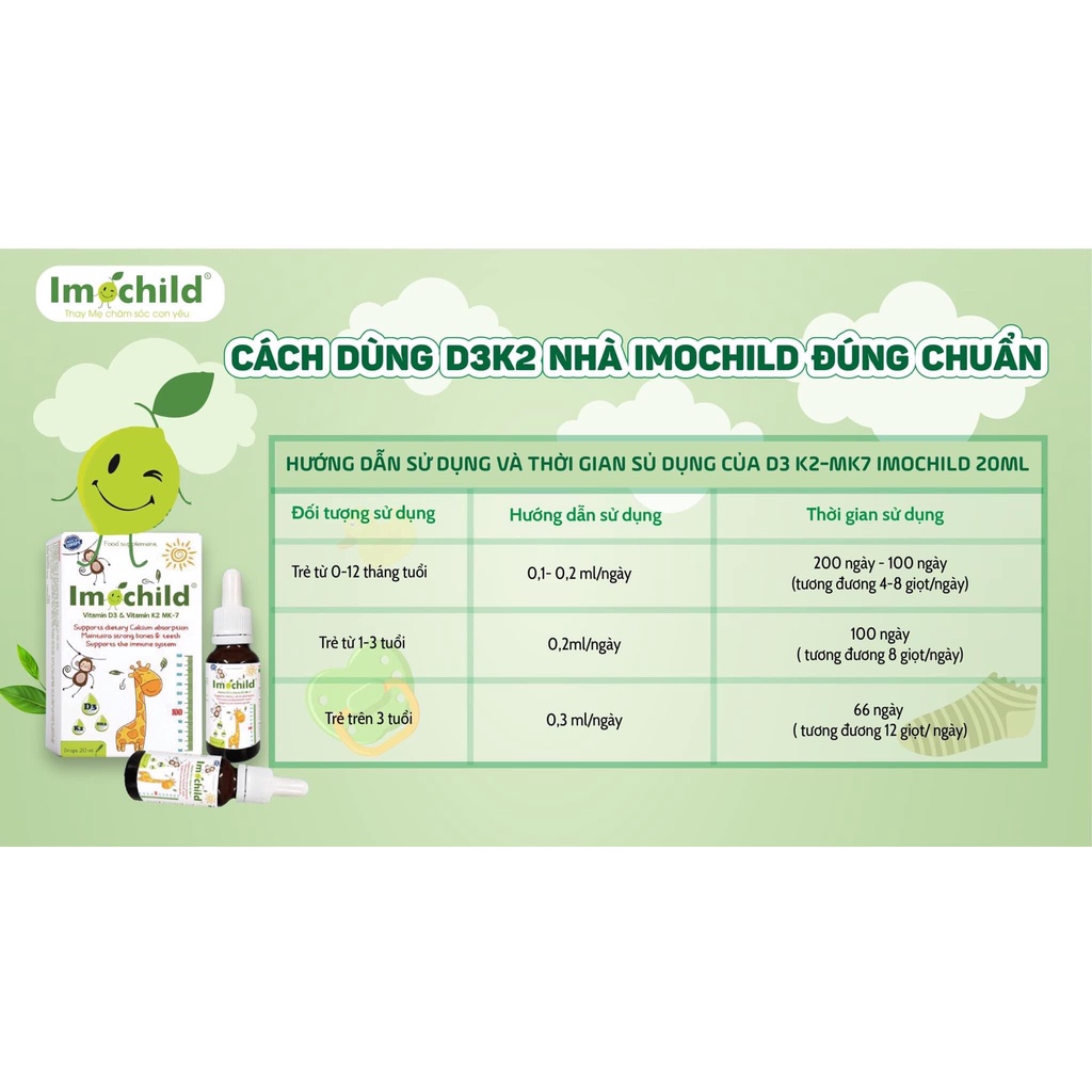 Giới thiệu Combo 3 Vitamin D3K2 Imochild, bổ sung vitamin D3, K2 và DHA cho bé phát triển chiều cao và trí não