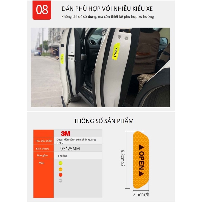 Giới thiệu Combo 4 Miếng dán Decal Phản Quang Dán Cánh Cửa Ô Tô OPEN Cao Cấp AZONE