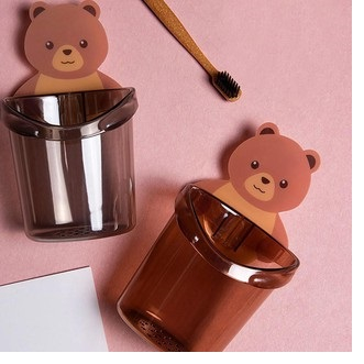 Giới thiệu Combo 5 Cốc gấu dán tường đựng bàn chải đánh răng, cốc gấu nâu đựng kem đánh răng