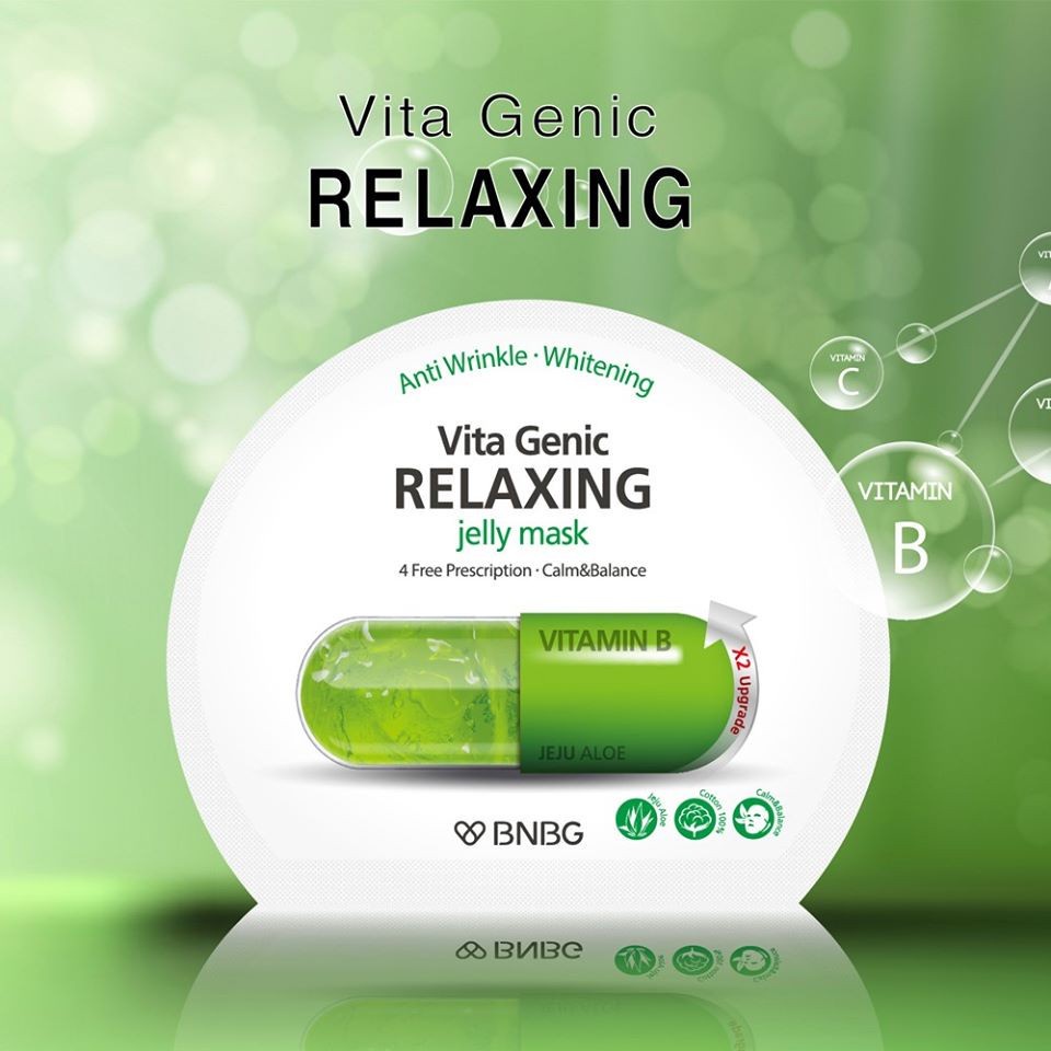 BNBG Vita Genic Relaxing Mask – màu xanh lá: với chiết xuất từ cây lô hội, sản phẩm này cung cấp Vitamin B để giúp da được thư giãn và cải thiện làn da xỉn màu, phục hồi nhanh chóng để thoát khỏi tình trạng mệt mỏi.