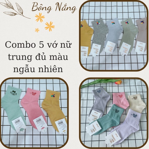 Giới thiệu Combo 5 Vớ nữ cổ trung, tất nữ cổ trung đủ màu pastel cute