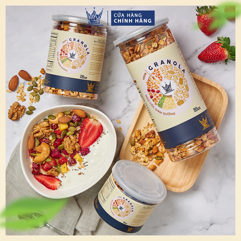 SẢN PHẨM NÀY HIỆN ĐANG CÓ SẴN TẠI KHO CỦA VUA YẾN MẠCH Xuất Xứ: Việt Nam Hạn Sử Dụng: 12 tháng ----------------- 💥 THÔNG TIN SẢN PHẨM GRANOLA - Hương vị thơm, ngon, giòn và bổ dưỡng từ công thức đặc biệt của nhiều năm nghiên cứu phát triển. - Thành phần : Yến mạch Úc, Quả óc chó Chile, Hạnh nhân Mỹ, Hạt bí xanh Ấn Độ, Hạt điều, Táo đỏ, Mật ong rừng. - Granola - Ngũ cốc dinh dưỡng cho mọi lứa tuổi. - Chỉ sử dụng mật ong rừng. ----------------- 👉 TẠI SAO NÊN SỬ DỤNG GRANOLA? 1. Giữ vóc dáng hiệu quả khoa học. 2. Cung cấp chất béo có lợi cho cơ thể. 3. Cung cấp 1 lượng lớn vitamin tổng hợp. 4. Một nguồn khoáng sản tốt cần thiết cho các cơ quan quan trọng. 5. Giảm mức cholesterol giảm nguy cơ gây bệnh tim mạch. 6. Giảm lượng đường trong máu. 7. Cải thiện sức khoẻ đường ruột (hệ tiêu hoá tốt) 8. Cung cấp nhiều chất chống oxy hoá cho cơ thể trẻ hoá. 9. Là lựa chọn thông thái cho chế độ ăn chay, ăn kiêng không thiếu chất và mệt mỏi. 👉 Những đối tượng nên sử dụng Granola ngay từ bây giờ: Người bệnh tim, người bị tiểu đường, người có nhu cầu giữ dáng, người tập gym.