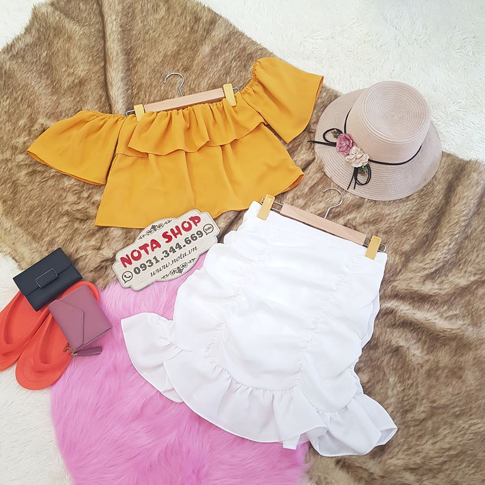 Giới thiệu COMBO Áo bẹt vai bèo + Chân váy ngắn nhúng đuôi cá dễ thương quyến rũ, SET BẸT VAI ĐUÔI CÁ