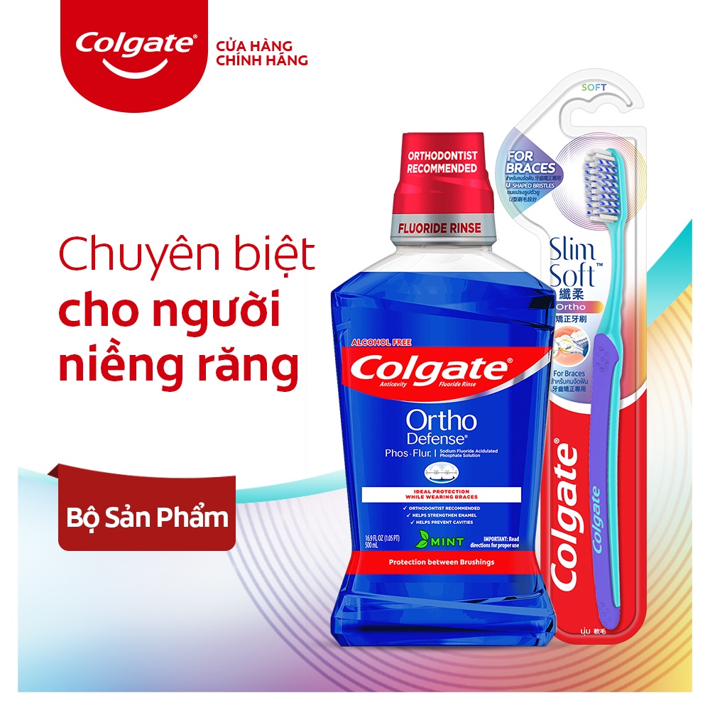 Combo bàn chải Colgate & nước súc miệng Colgate Ortho 500ML dành cho người niềng răng
