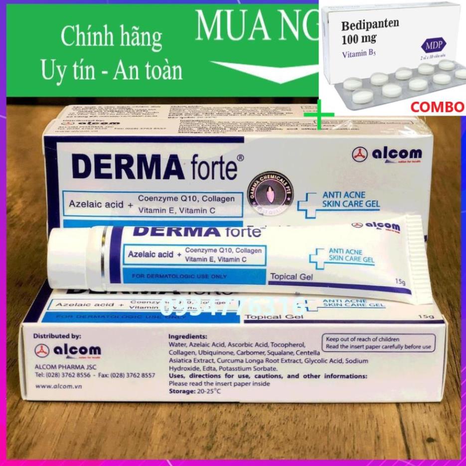 Giới thiệu Combo Bedipanten 100mg + Derma Forte , mới, mụn mủ, mụn đầu đen, mờ thâm, liền sẹo,..