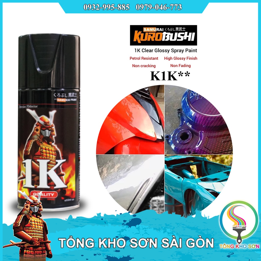 BỘ COMBO 01 chai lót UCH210 01 chai nền 102 01 chai màu 164 01 chai phủ bóng K1K** ------------------------------ ƯU ĐIỂM SẢN PHẨM: Bình xịt sơn Sơn Samurai có ưu điểm kháng xăng, chống nứt nẻ nên cho độ bền cao và tính thẩm mỹ vượt trội Bình sơn xịt sơn Samurai Cấu trúc vòi phun dạng xoắn ốc, cho phép lượng sơn xịt phân bố đồng đều, tiết kiệm sơn hơn các vòi xịt sơn thông thường. Sơn phun xe máy SAMURAITM/ KUROBUSHITM cho kết quả tốt từ việc sơn dàn áo một cách sáng tạo đến sơn theo màu gốc ban đầu của xe máy. Đây là một công thức sơn phun cải tiến được chế tạo đặc biệt cho những người đam mê DIY, để có được sự hoàn thiện TUYỆT VỜI cho bề mặt. Sơn phun xe máy SAMURAITM/ KUROBUSHITM có tất cả màu sắc của các thương hiệu xe máy hàng đầu như Yamaha, Honda, Kawasaki, Suzuki, màu tiêu chuẩn và màu đặc biệt ĐỘ BỀN: Tuổi thọ của sơn tối thiểu 4-5 năm phụ thuộc tình trạng sử dụng và quy trình sơn (khi lựa chọn sản phẩm 2K) Độ bền màu sơn từ 2-3 năm tùy thuộc vào tình trạng sử dụng và quy trình sơn (khi lựa chọn sản phẩm 1K) #binhsonxit #Chaixit #chaisonxit #binhxitson #sonxit #sonsamurai