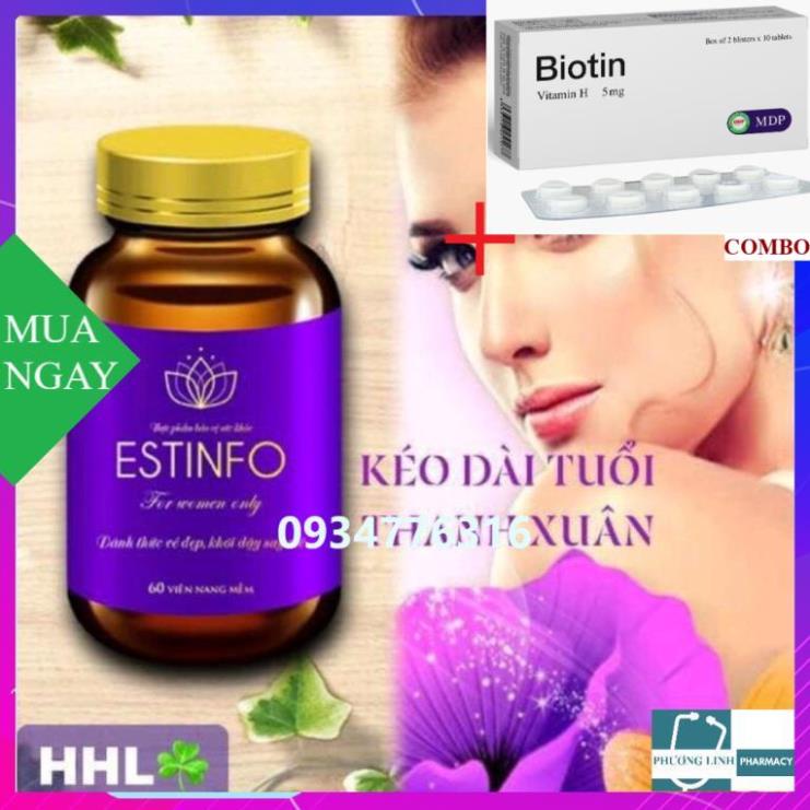 Sản phẩm Combo Biotin 5mg+ Estinfo - Hỗ Trợ Tăng Cường Nội Tiết Tố Nữ đang có giá bán là 595,500đ. Hiện tại, đang có hàng sẵn tại shop của chúng tôi trên sàn TMĐT Shopee. Quý khách có thể ĐẾN NƠI BÁN để vào shop chúng tôi đặt mua online, trả góp, ship hỏa tốc, thanh toán thẻ visa/master, thông tin xuất hóa đơn đỏ (VAT) hay cần có thêm nhiều thông tin về sản phẩm.