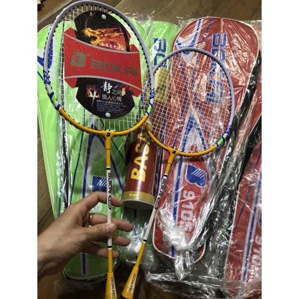 Bộ đôi vợt cầu lông Bokai 9105 và cầu lông Ba sao được mô tả như sau: 1. Bộ vợt cầu lông hợp kim nhôm. Vợt có khung và cán được làm bằng chất liệu cao cấp siêu bền, có khả năng chịu lực cao. Tay cầm dc làm bằng gỗ bọc, bọc ngoài bằng lớp lót dày, chắc tay. Bộ đôi vợt dc thiết kế đẹp mắt khỏe khoắn. Phù hợp mọi lứa tuổi Màu sắc: Màu đỏ màu vàng vỏ xanh lá 2. Hộp cầu lông Ba sao 10 quả Chất liệu lông gia cầm. Dùng cho tập luyện. Phù hợp với mọi thời tiết. Sản xuất Việt Nam. Bộ sản phẩm gồm 2 vợt cầu lông, 1 bao vợt và 1 hộp Ba sao Hình ảnh shop chụp bằng điện thoại nên khi nhận hàng sẽ là sản phâm y như trên hình bạn hoàn toàn yên tâm ạ! Cam kết để trả hoàn tiền nếu sản phẩm bị lỗi do nhà sản xuất Liên hệ: 0915 787 018 hoặc zalo 0987711902