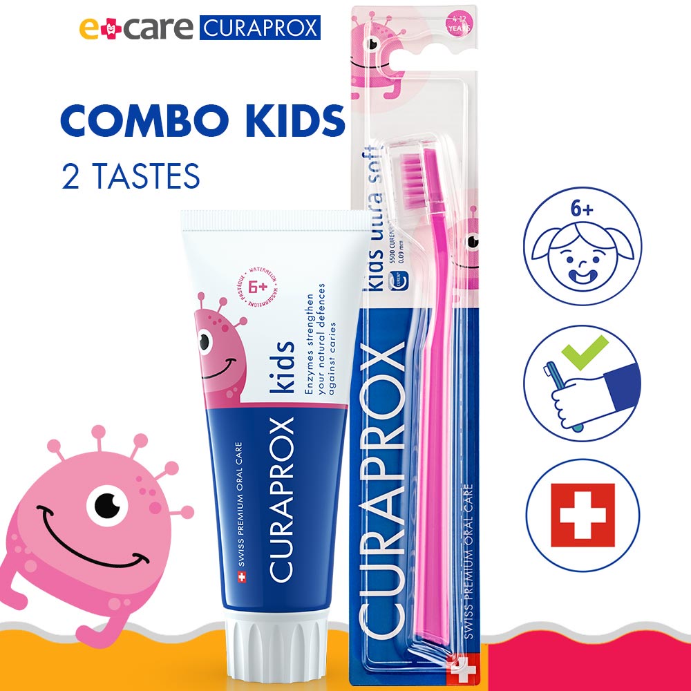 Combo chăm sóc răng trẻ em Curaprox CS Kids. Bàn chải Curaprox CS Kids có 6 màu, Shop sẽ giao màu ngẫu nhiên theo phân loại màu bé trai và màu bé gái. Ba mẹ cần tư vấn hoặc chọn màu có thể để lại note hoặc chat với shop nha ^^