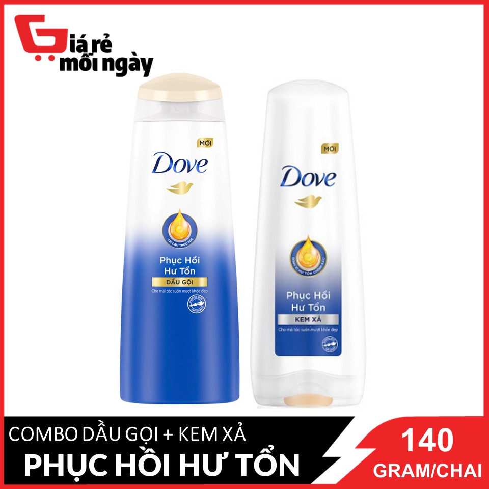 Giới thiệu Combo Dầu Gội + Kem Xả Dove Phục Hồi Tóc Hư Tổn 140 Gram x2