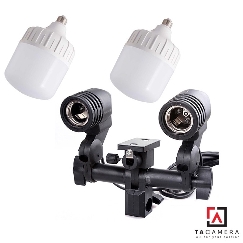 TA Camera: Combo Đui Đèn Đôi E27 (có thể gắn 2 bóng cùng lúc) + 2 Bóng Đèn LED Kenno siêu sáng 50W