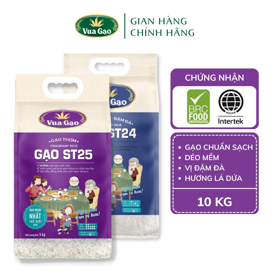 Giới thiệu Combo Gạo ST25 và Gạo ST24 - Chính Hãng Vua Gạo - Túi 5kg (Cam kết date mới)