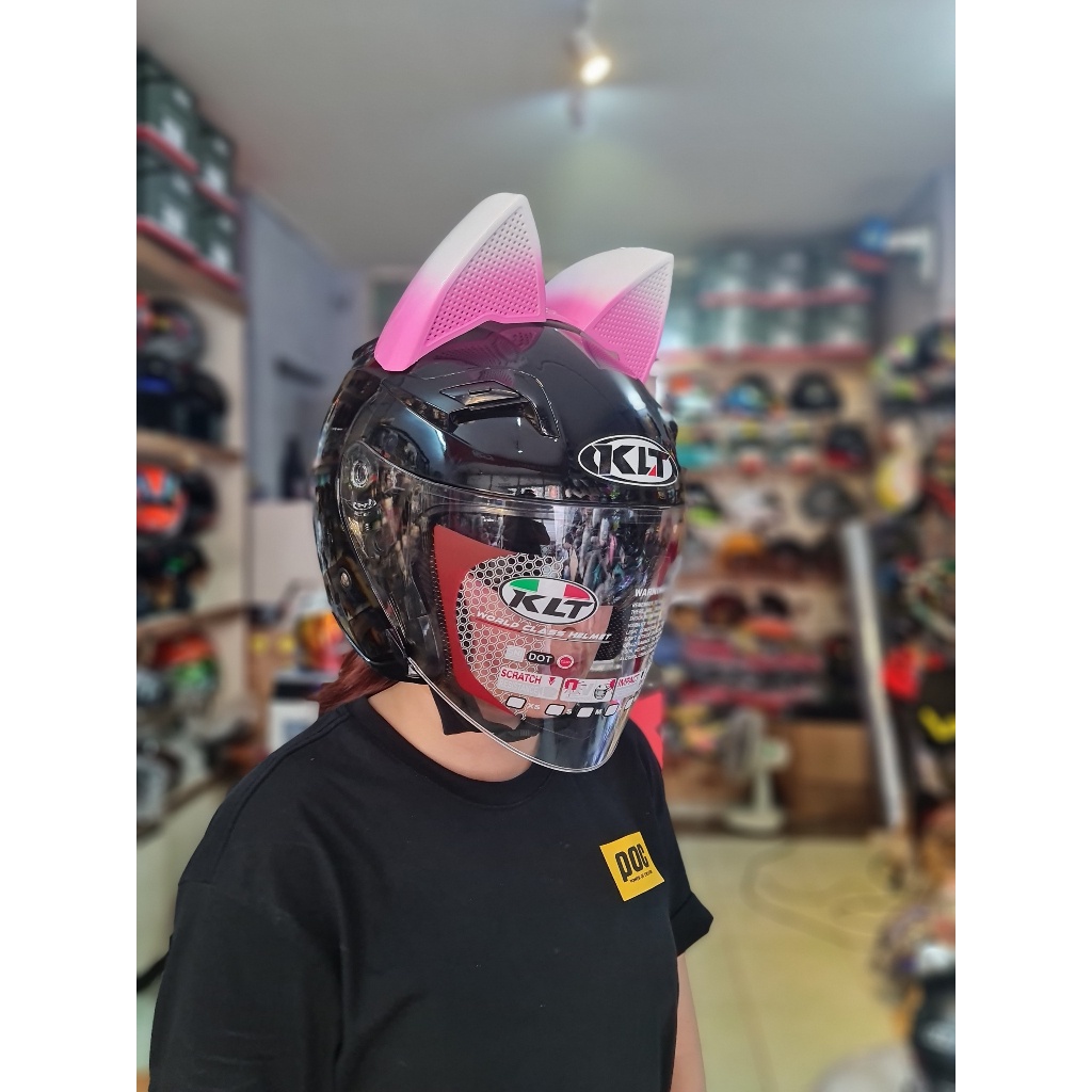 Giới thiệu Combo Nón bảo hiểm 3/4 KLT đen bóng gắn tai mèo to hồng loang trắng - Nón bảo hiểm chính hãng