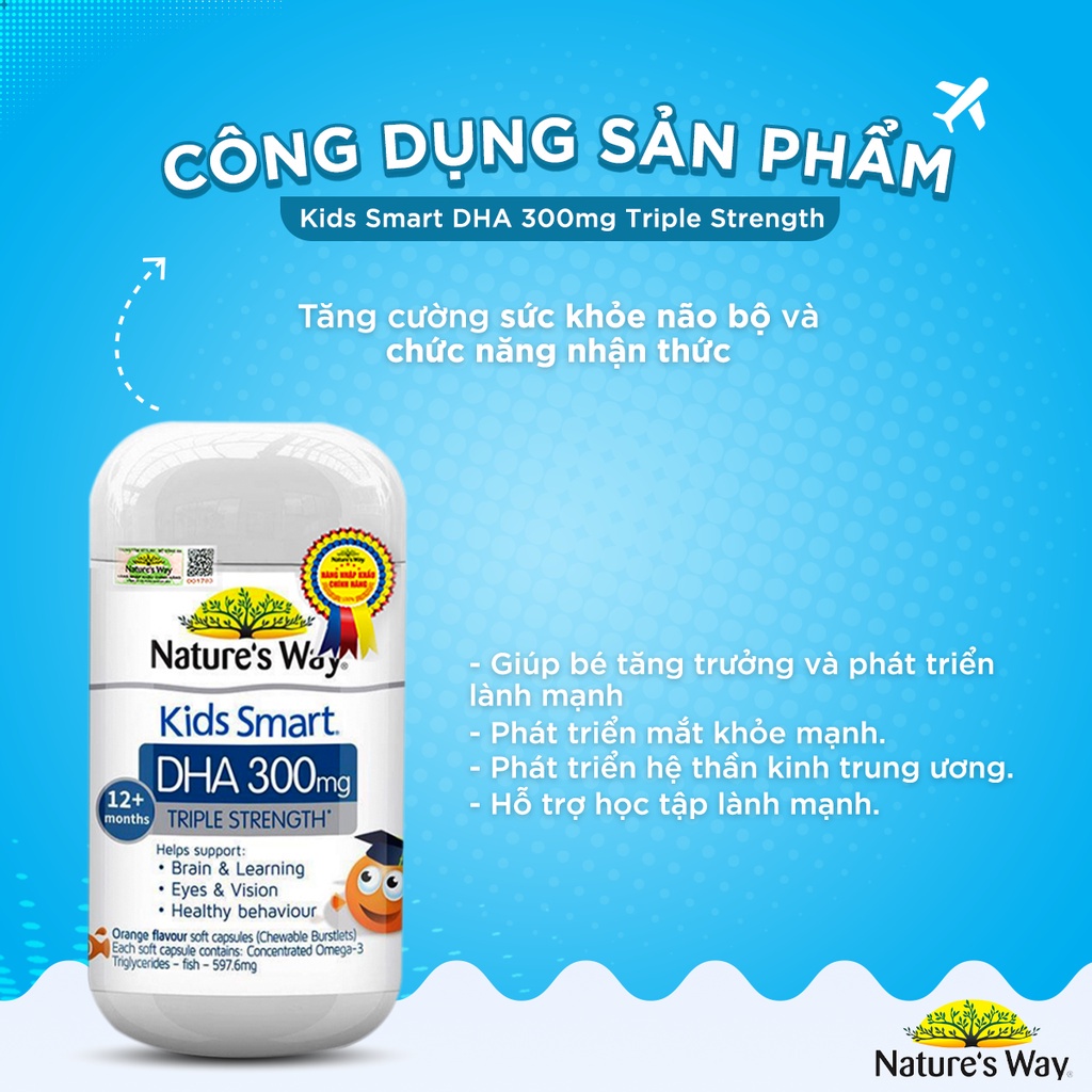 Mẹ & Bé > Chăm sóc sức khỏe bé > Vitamin & Thực phẩm bổ sung > Combo Phát Triển Trí Não, Tăng Chiều Cao NATURE'S WAY Kids Smart DHA 300mg +Calcium, Vitamin D3 Cho Bé Từ 1 Tuổi 50v/lọ