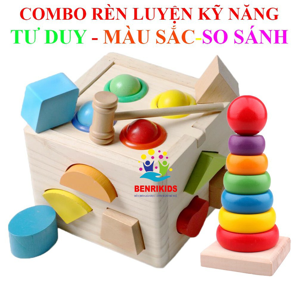 Combo Phát Triển Trí Tuệ Đồ Chơi Thả Hình Đập Bóng Kèm Tháp Sắc Màu Phân Biệt Kích Thước- Đồ Chơi Giáo Dục Montessori