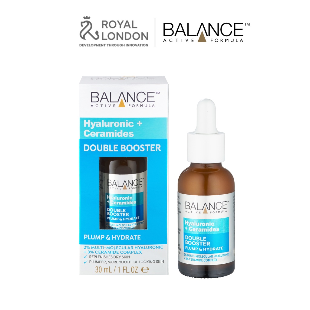Balance Active Hyaluronic & Ceramides Double Booster là sự kết hợp các thành phần hoạt tính: 2% Hyaluronic Acid và 3% Ceramides giúp cấp ẩm, làm căng mọng và đánh bay các dấu hiệu lão hóa. Các phân tử Hyaluronic Acid đi sâu bề mặt da để giữ nước cho da và giúp giảm sự xuất hiện của các nếp nhăn. Kết hợp cùng với Ceramides, thành phần hiệu quả trong việc giữ ẩm; giúp làn da khô trở nên ẩm mịn và tươi trẻ hơn. Đây được xem là sản phẩm phù hợp để sử dụng trong điều kiện da cần được phục hồi, đang sử dụng kèm treatment khác hoặc trong tình trạng da bong tróc do thời tiết.
