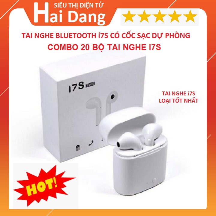 Tai nghe Bluetooth không dây i7s-Tws cái hai tai nghe kèm hộp sạc âm thanh cực hay cực sống động, mang đến cảm giác nghe nhạc thật chân thực. - Nhỏ gọn, dễ sử dụng và tương hợp sở hữu đa số các cái điện thoại có kết nối Bluetooth bây giờ và đặc thù có một giá thành khá thấp đây vững chắc là một tuyển lựa đáng quan tâm dành cho bạn. - cái tai nghe này chỉ mang 1 phím nguồn khá đơn thuần trên tai nghe sử dụng để bật tắt. Chính ngoài mặt đơn giản này sản phẩm đích thực chiếm được thiện cảm của người mua . - Được khiến cho bằng nhựa cứng mang bề mặt phủ bóng, phân chân sạc tròn bé giấu kín tương đối tinh tế. ----- ưu điểm CỦA SẢN PHẨM----- --- với chức năng chuyển bài hát --- Nghe nhạc qua Bluetooth được. --- Nhận được cuộc gọi tới và đi. --- dùng kỹ thuật Bluetooth V4.1+ EDR mới nhất --- Dung lượng pin 60mAh, thời gian sạc 1-2h --- Kèm hộp sạc: cho dung lượng và thời gian tiêu dùng thêm 4h nữa. --- Nguồn sạc : DC 5V --- Bluetooth Support: A2DP1.3/HFP1.6/HSP1.hai/AVRCP1.6/D11.3 --- Cường độ âm thanh: -42Db --- Khoảng bí quyết kết nối tối đa lên đến 10m. ----- CAM KẾT CỦA shop----- --- Hàng mới 100% mới, hàng chất lượng. --- Miễn phí đổi trả trong vòng 7 ngày do lỗi của nhà sản xuất