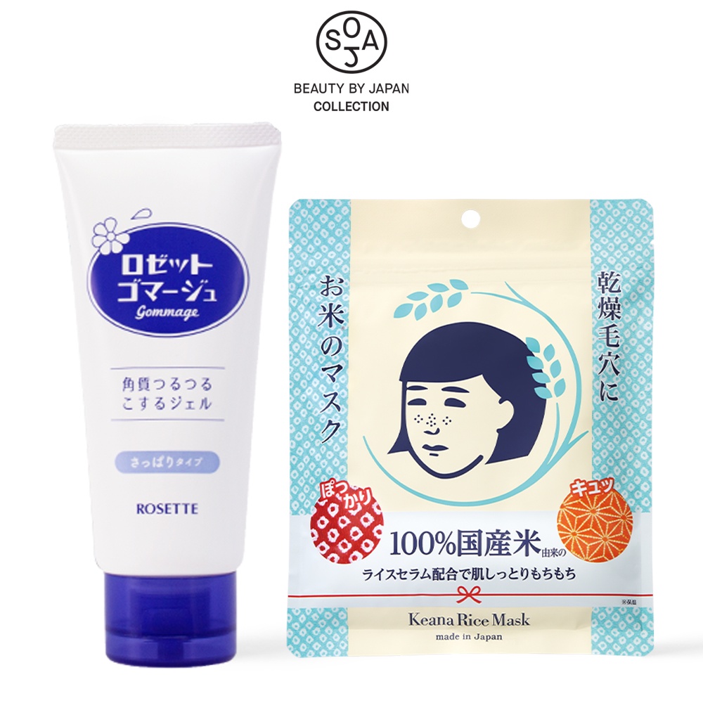 Thương hiệu: Rosette + Keana Rice Xuất xứ: Nhật Bản Hạn sử dụng: 3 năm Bộ sản phẩm bao gồm: 1 x Tẩy Tế Bào Chết Rosette Gommage 180G 1 x Mặt Nạ Cám Gạo Dạng Đắp Keana Rice Mask 10 Miếng