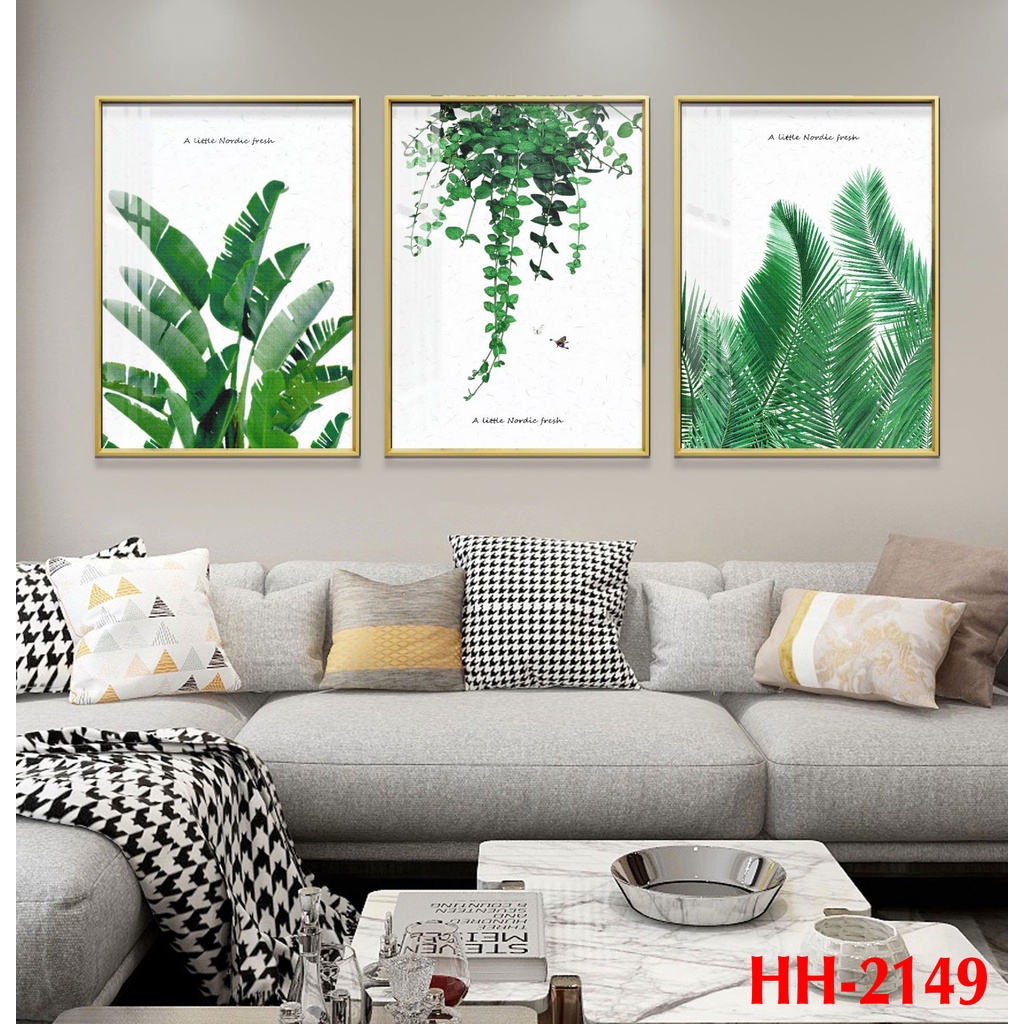Combo tranh treo tường lá xanh- Tranh treo tường giá xưởng -Tặng kèm đinh 3 chân chuyên dụng không cần khoan tường