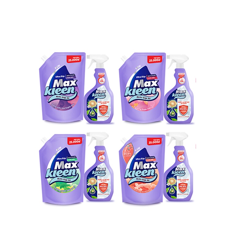 Giới thiệu Combo Túi Nước Giặt Xả 2.4kg + Nước Lau Bề Mặt Đa Năng Maxkleen:Hoa Nắng