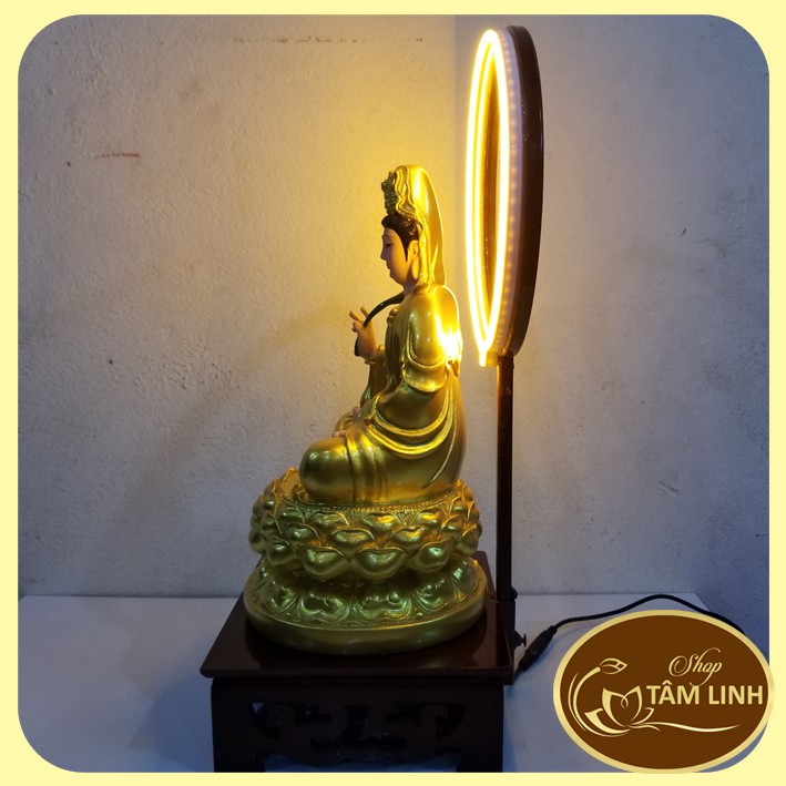 Combo Tượng Quan Âm cao 30 cm+Hào Quang Led cao 45 cm + Đôn gỗ vuông 20 Mẫu Kệ Đèn Đẹp GIÁ SIÊU RẺ
