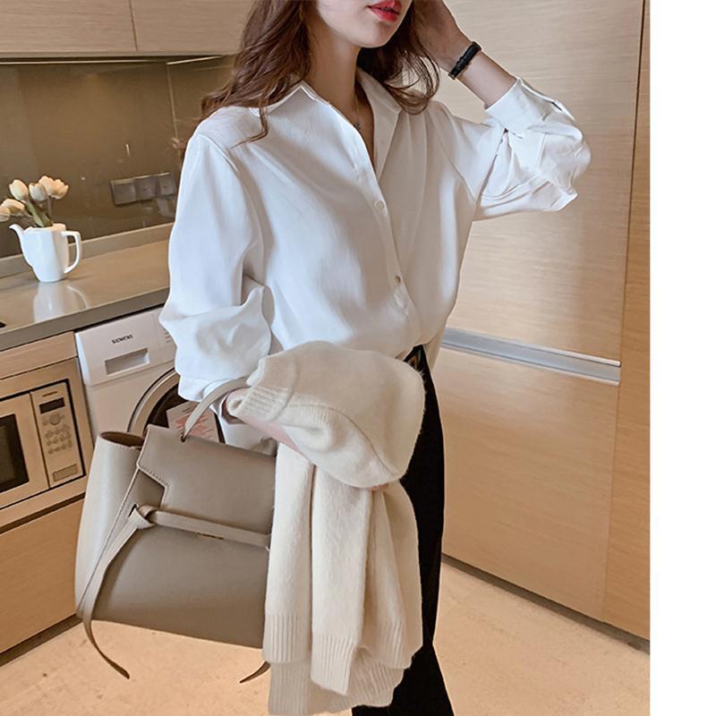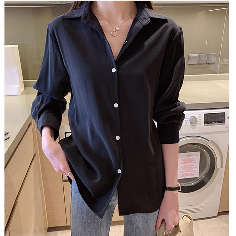 Phong cách: Đi làm đơn giản / phiên bản Hàn Quốc Đặc điểm: Có nút, màu trơn Phiên bản áo: Dáng rộng Chiều dài tay áo / Chiều dài: Trung bình / Tay áo dài Kiểu áo: Một hàng nút và nhiều nút Vải / Chất liệu: Voan / Polyest (Sợi Polyeste) Thành phần: 91% (bao gồm) -95% (bao gồm) Loại cổ áo: Cổ áo POLO