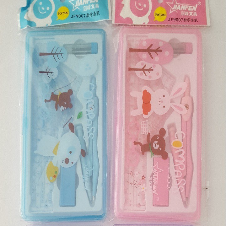 Giới thiệu Bộ compa eke thước kẻ cute Động vật LL01, bộ thước eke học sinh 7 chi tiết