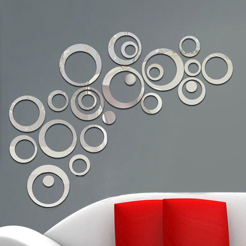 Hiệu ứng gương nghệ thuật Nhãn dán tường TV Nền trang trí tường Phòng khách Trang trí phòng ngủ Vòng tròn 3D Tự làm Acrylic