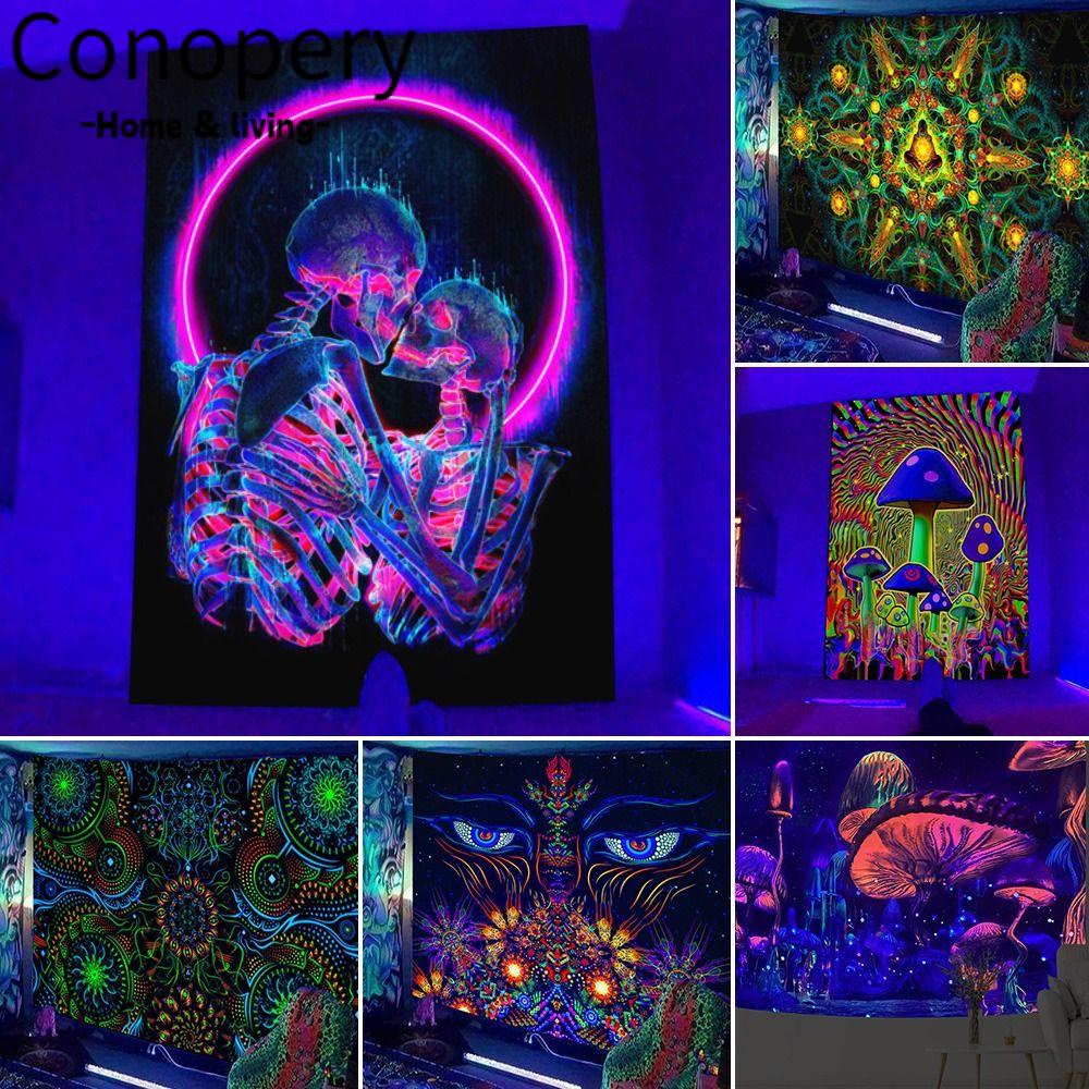 Tấm thảm Nấm Bức tranh tường Nền Vải Treo tường Psychlic Hippie Trippy Nghệ thuật ảo giác Trang trí nội thất