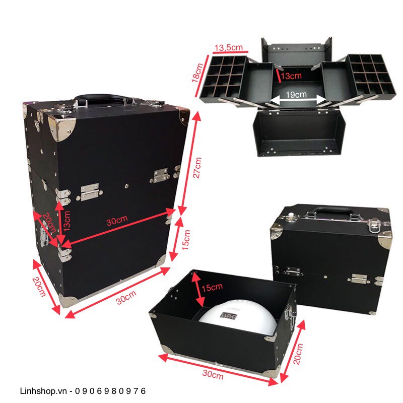 - Chất liệu: Cốp đựng đồ nail HAMACA LS3042 được chế tạo từ gỗ, bên ngoài bọc da simili cao cấp, khó trầy xướt nếu va chạm nhẹ, khung viền nhôm, inox và hợp kim sáng bóng, sang trọng, chắc chắn, xài bền. - Cốp đựng đồ nail có khay chia nhiều ô vuông (có thể tháo rời tùy ý) tiện lợi giúp bạn để đứng nhiều chai sơn móng, tiết kiệm diện tích. - Nhiều ngăn, đáy sâu, thoải mái đựng đủ bộ đồ nghề nail tiêu chuẩn. - Cốp gọn nhẹ, dễ dàng di chuyển khắp nơi. - Có chìa khóa bảo mật đồ dùng và dụng cụ bên trong. - Dây đeo chắc chắn giúp bạn dễ dàng mang theo. - Size cốp: Ngang 30x rộng 20x cao 42 (cm) gồm 2 tầng có thể tháo rời tùy ý. * Tầng 1: ngang 30x rộng 20x cao 27 (cm). + Chiều cao từ mâm trên -> nắp cốp: 10cm (để được chai sướn móng đứng). + Đáy sâu: 13cm. * Tầng 2: ngang 30x rộng 20 x cao 15 (cm). Đựng vừa máy hơ gel Sun 5 Plus, máy mài, chai sơn móng cao, để đứng chai nước hoa hồng, nước tẩy trang, kem lót nền,...tránh đổ nước ra ngoài. - Cân nặng: ~3.5kg. ✅ CAM KẾT TỪ SHOP: - Hàng luôn giống hình, chất lượng đảm bảo. - 100% cốp đựng đồ nail được sản xuất thủ công tỉ mỉ từng chi tiết từ những bàn tay thợ lành nghề nhất. - Được đổi bất kỳ sản phẩm nào khác của shop trong vòng 7 ngày nếu bạn không ưng ý với sản phẩm hiện tại. - Bảo hành chu đáo 12 tháng. - Hỗ trợ sửa chữa trọn đời. - Được đổi trả nếu shop giao sai hàng (shop chịu hoàn toàn chi phí). - Hàng luôn có sẵn tại Linh Shop khách có thể đến xem và mua trực tiếp. --------------------------------------