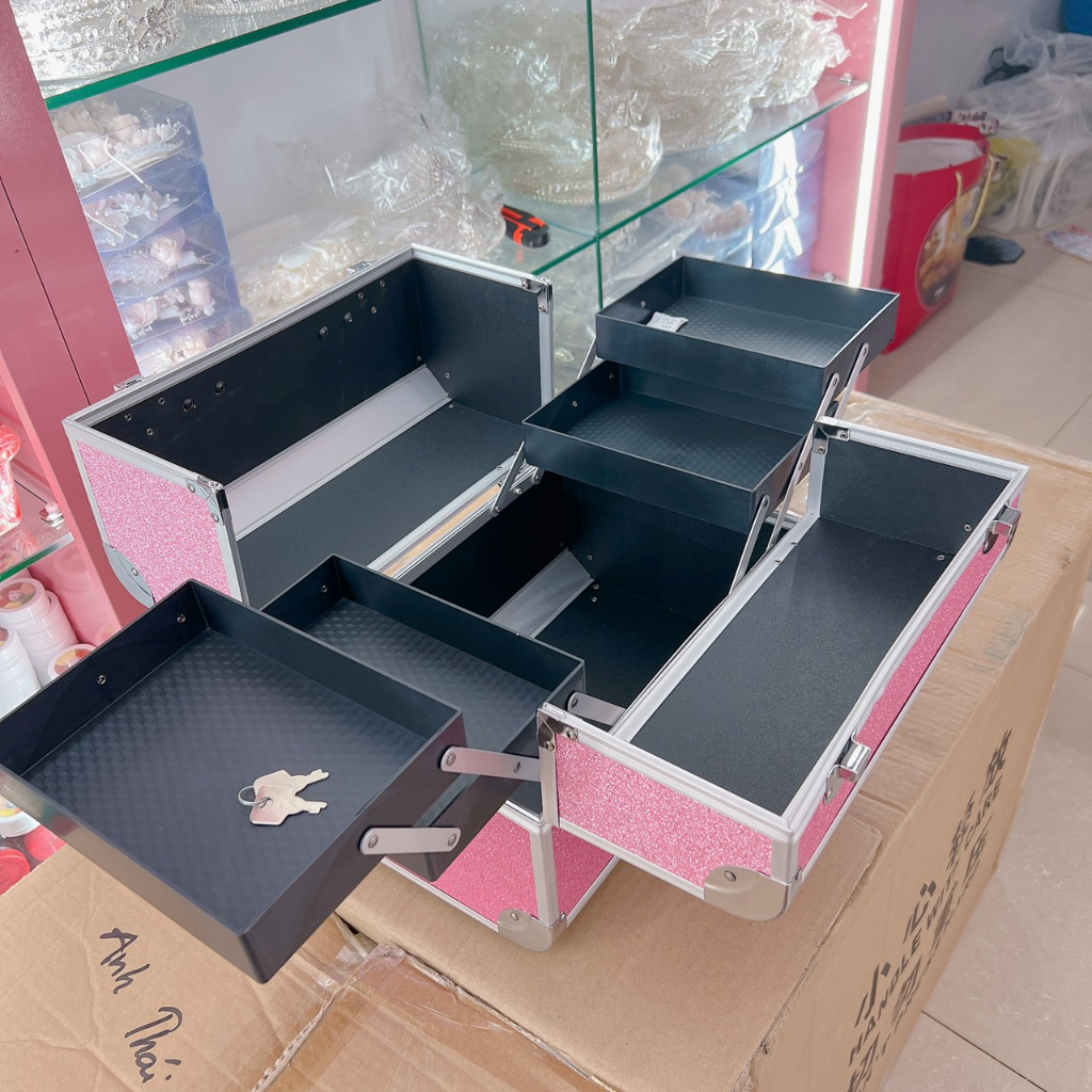 - Cốp đựng đồ nail mi, trang điểm thích hợp cho các chị em học nghề, hay di chuyển ra ngoài, làm nail tại nhà khách hàng. - Cốp đựng đồ nail mi có khoang chứa rộng rãi để được máy hơ loại nhỏ, máy mài và có ngăn để phụ kiện trang trí nails. - Cốp đựng đồ trang điểm gồm có 2 tầng, thiết kế dạng bậc thang thông minh, chia ngăn nhỏ giúp người sử dụng để đồ dùng tiện lợi và gọn gàng hơn. Cốp nhôm được làm từ chất liệu nhôm cao cấp, có khả năng chống thấm nước cao, thợ nail có thể di chuyển trong mưa mà không lo lắng các dụng cụ nail bên trong bị ướt. Ngoài ra, các khay bên trong được làm từ nhựa PP, dễ dàng vệ sinh.