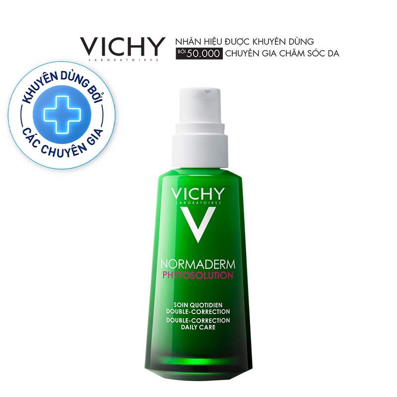 Kem dưỡng dạng gel sữa dành cho da mụn với tác động kép Vichy Normaderm Phytosolution Double-Correction Daily Care 50ml có thành phần hoạt tính hoàn toàn từ thiên nhiên, an toàn cho mọi loại da kể cả da nhạy cảm. Kết cấu kem mỏng nhẹ, thẩm thấu nhanh vào da, tác động trực tiếp vào nguyên nhân gây nên mụn trứng cá, làm giảm mụn, mụn trứng cá và các đốm nâu sau mụn. Sản phẩm cũng cung cấp nước, độ ẩm, tái tạo củng cố hàng rào bảo vệ da, cải thiện sắc tố da mang đến làn da sáng mịn, đều màu. Lần đầu tiên, bạn sẽ tìm thấy một dòng kem hỗ trợ giảm mụn không hề nặng nề cho da, giúp việc loại bỏ mụn dễ dàng hơn bao giờ hết.