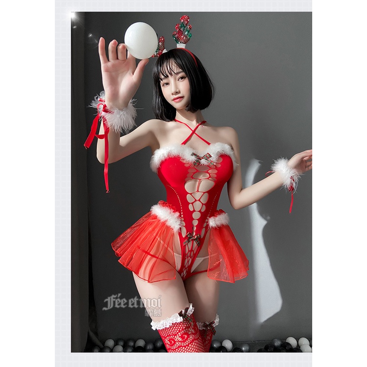 Giới thiệu Cosplay Giáng Sinh Sexy Áo Kèm Full Phụ Kiện Phối Viền Lông Cao Cấp - Concept Noel, chụp ảnh studio nàng thơ