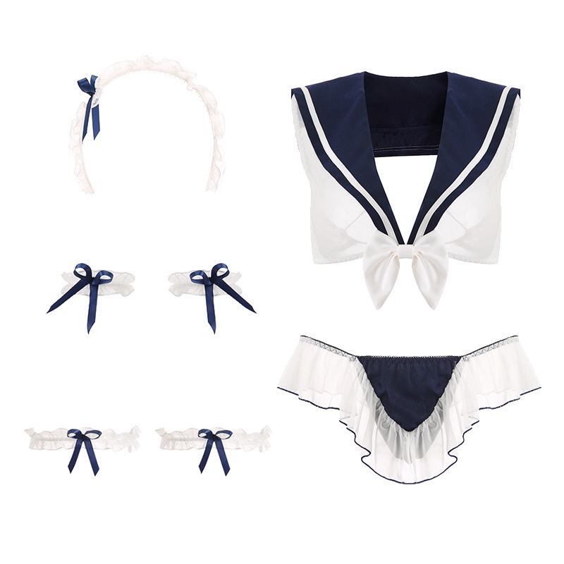 Cosplay nữ sinh phối nơ ngực sexy đáng yêu set đồ ngủ 2 mảnh Anime thủy thủ xuyên thấu hottie cao cấp BIKI HOUSE N763