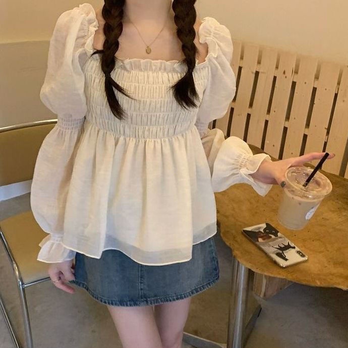 Vải Nội dung thành phần “ 51 ” ( bao gồm)) - 70 ” ( bao gồm Phong cách " Đi làm đơn giản " Đơn giản Chi tiết kiểu dáng “ Đồng màu. viền xù Loại quần áo mỏng Chiều dài 'Chiều dài tay áo ' Thường xuyên 'Tay áo dài Áo pull phía trước Loại cổ áo - cổ vuông Độ tuổi áp dụng “ Thanh niên (18-25 tuổi) Lông cừu hay không - Không có lông cừu Ngày ra mắt - Mùa hè 2023 Loại tay áo ' tay áo phồng
