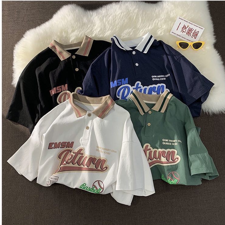 Vải / Chất liệu: Polyester / Polyester (Polyester) Hàm lượng thành phần: 31% (bao gồm) - 50% (bao gồm) Các yếu tố phổ biến: in ấn, chữ cái, đồng màu Phiên bản áo: Dáng rộng Phong cách: ngọt ngào và tươi mát Chiều dài / Chiều dài tay áo: Tay áo thường / Tay ngắn Loại cổ áo: Cổ áo POLO Độ tuổi sử dụng: Thanh niên (18-25 tuổi) Có thêm cashmere hay không: Không cashmere Sẵn có: Mùa hè năm 2021 Loại tay áo: Thường xuyên