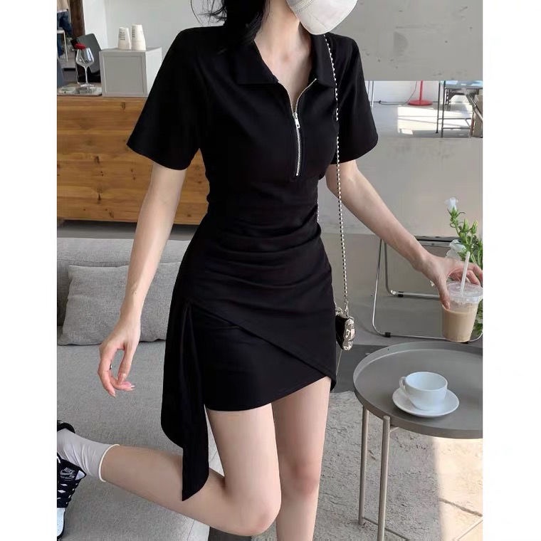 Giới thiệu COZOK Đầm Cổ POLO Tay Ngắn Thiết Kế Lệch Tà Cá Tính