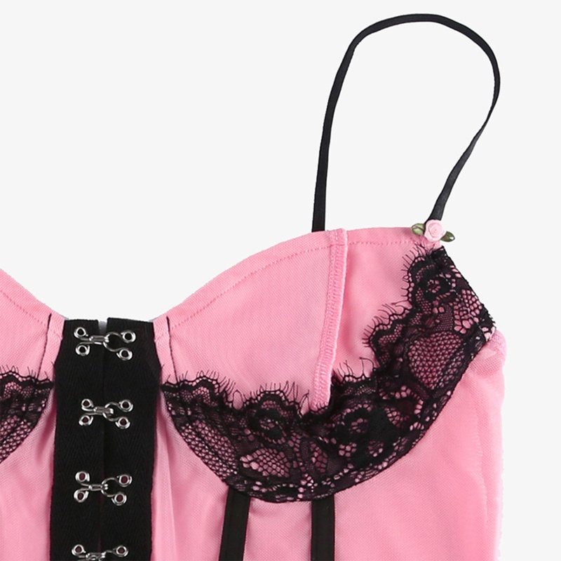 Phụ nữ Spaghetti Dây đeo Bustier Crop Top Ren Nối Móc Trước Lưới Camis Vest Thương hiệu mới và chất lượng cao