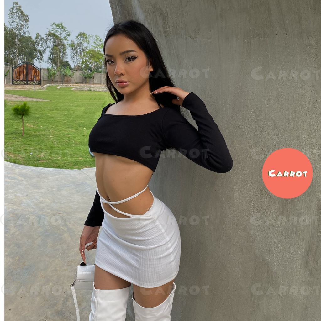 Giới thiệu Croptop tay dài chân váy trắng basic ôm eo cột dây tôn dáng chất thun trendy thời trang nữ carrotxinhdep