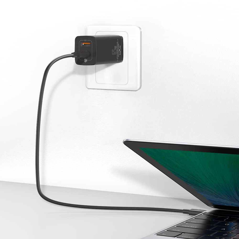 Giới thiệu Củ sạc Baseus gan 67W 2 cổng kèm cáp 2 đầu type c - Bộ cục 65W kèm dây type c to typec dùng cho máy tính điện thoại