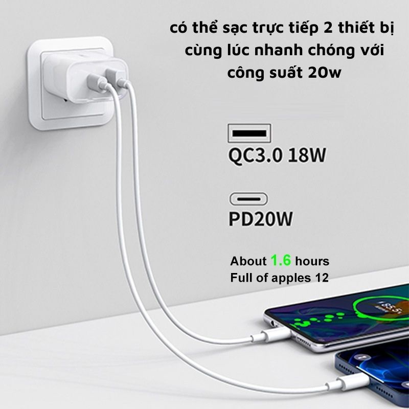 Giới thiệu Củ sạc nhanh 20W 2 cổng sạc nhanh PD 20W - QC3.0 20w Chính Hãng WP-U53 Bảo Hành 12 Tháng - Bluetech