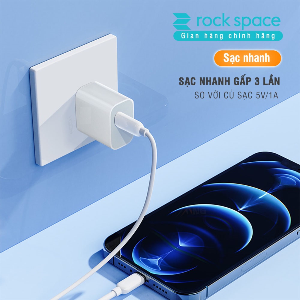 Điện Thoại & Phụ Kiện > Pin Gắn Trong, Cáp và Bộ Sạc > Cáp Sạc và đầu chuyển đổi > Củ sạc nhanh 20W Rockspace T18 Chuẩn PD cổng Type C không nóng máy hàng chính hãng bảo hành 12 tháng