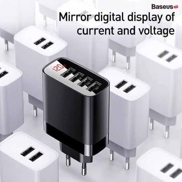 Giới thiệu Củ Sạc Nhanh Baseus Đa Năng 4 Cổng USB Mirror Lake Digital Display 30W, Nhựa ABS Chống Cháy, 4 Ports USB, (CCJMHB-B02)