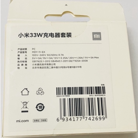 Sản phẩm này là ĐANG CÓ HÀNG. HÀNG CÓ SẴN và hoan nghênh bạn đặt hàng. Nếu bạn có bất kỳ câu hỏi nào hoặc gặp bất kỳ vấn đề nào về sản phẩm, ✅Xin vui lòng liên hệ với chúng tôi. Chúng tôi sẽ chân thành giúp bạn với các vấn đề. ❌Một đánh giá tiêu cực sẽ KHÔNG giúp giải quyết các vấn đề. Đánh giá cao đánh giá 5 sao của bạn. Chúng tôi sẽ tiếp tục cải thiện sản phẩm của mình và cung cấp dịch vụ tốt hơn cho bạn. Chú ý: Dây chỉ sạc không truyền dữ liệu chỉ hỗ trợ sạc Turbocharger Thông tin sản phẩm: ☀ Tên sản phẩm: Cốc sạc 33W XIAOMI ☀ Màu sắc: Trắng ☀ Kiểu chân sạc: US (chân dẹp) ☀ Sạc nhanh: Turbocharger 11V-3A. ☀ Đầu vào: 100-240V ~, 50 / 60Hz, 0,7A (Tối đa) ☀ Đầu ra: USB: 5V - 3A, 9V -3A, 12V-2,25A, 20V - 1,35A tối đa / 11V - 3A tối đa 33W ☀ Đầu ra: USB: 5V - 3A, 9V -3A, 20V - 2.25A tối đa / 11V - 5A tối đa 55W ☀ Chất liệu: chất liệu chống cháy ABS ☀ Chứng nhận: RoHS, FCC, CE