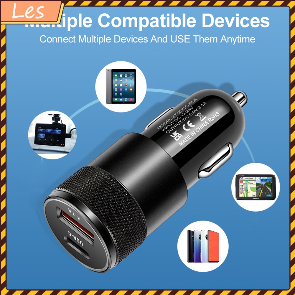 Mini USB C Car Charger Type C 3.1A 15W PD Quick Fast Charging Adapter for Mobile Phone iPad Feature: 1. Security and availability. It can protect your device from over-current, overcharge and overheating, so as to achieve safe and fast charging, 2. ABS + aluminum alloy fireproof material is used to ensure excellent performance and reliability. 3. Easy to carry and use, you can use the cable plug to charge the device, suitable for home, tourism, office, etc. 4. General compatibility. It can charge different devices stably, such as mobile phone, iPad, dash cam and so on 5. Compact and portable. Compact design, small and light, increased portability