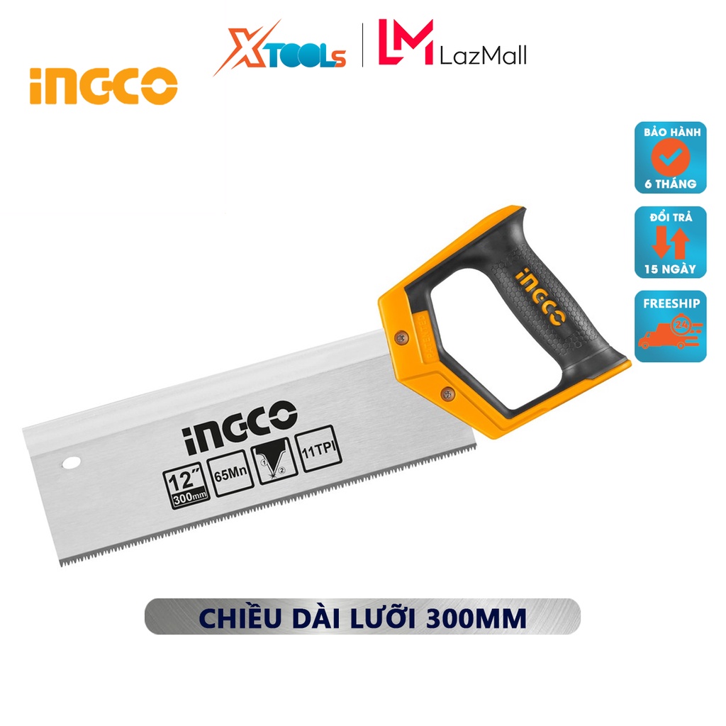 - Lưỡi cưa sẽ không bị gỉ sét ngay cả khi tiếp xúc nhiều với môi trường ẩm ướt, răng cưa bảo vệ và chịu nhiệt tốt - 24/T - Phần tay cầm được bọc nhựa có đường vân lõm tạo nên độ ma sát cao nên người dùng có thể cầm cưa một cách thoải mái, chắc chắn mà không sợ trơn trượt. - Chiều dài của cưa ingco là 300mm, 11 răng cưa/ 1inch giúp tạo lực kéo – đẩy tốt hơn.