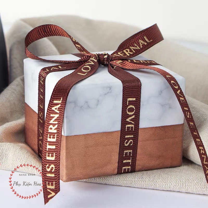 [KHỔ 1CM] Ruy Băng Gân In Chữ ♥️ LOVE IS ETERNAL ♥️ Cuộn 22m/45m, Trang Trí Quà Tặng - Bó Hoa