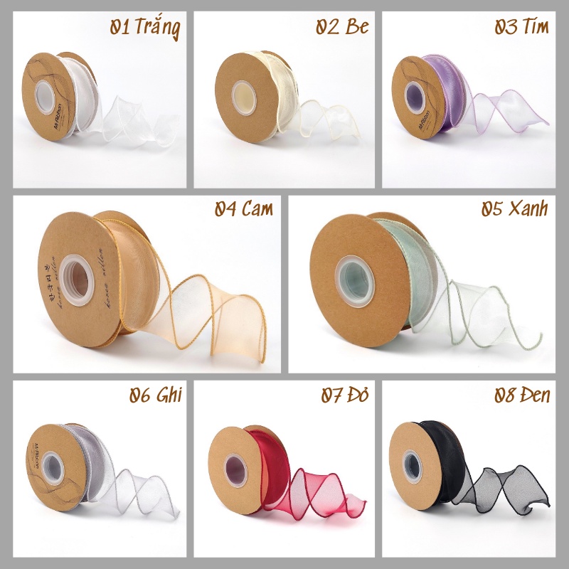 [Cuộn 9.1m] Dây Ruy Băng Voan Bản 3cm, Trơn Màu, Viền May Cao Cấp, Trang Trí Quà Tặng - Bó Hoa - Làm Nơ