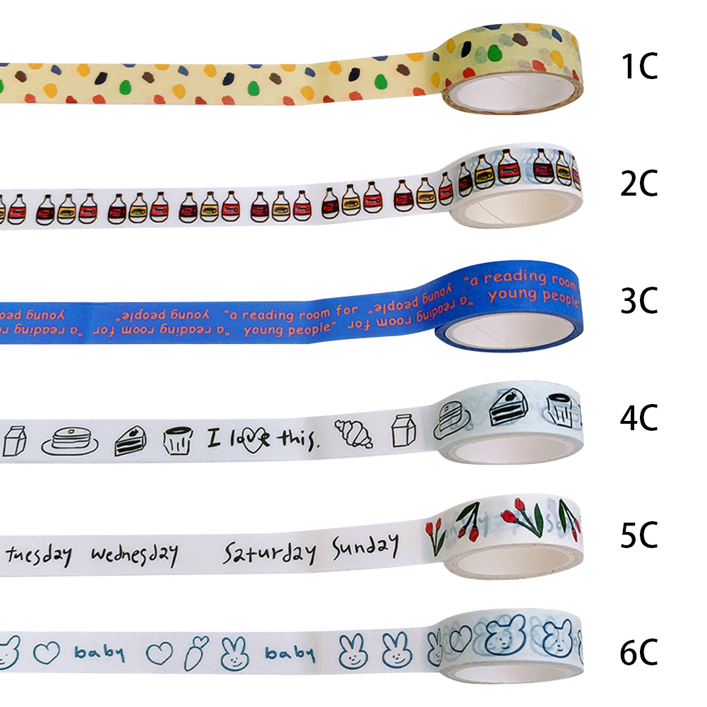 Tên sản phẩm: Cuộn băng dính họa tiết hoạt hình Khối lượng tịnh: 7g Chất liệu: Giấy Nhật Bản Kích thước: 1.5 * 300cm